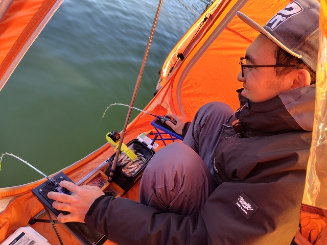 途中からはテントで安定して釣っていきます!