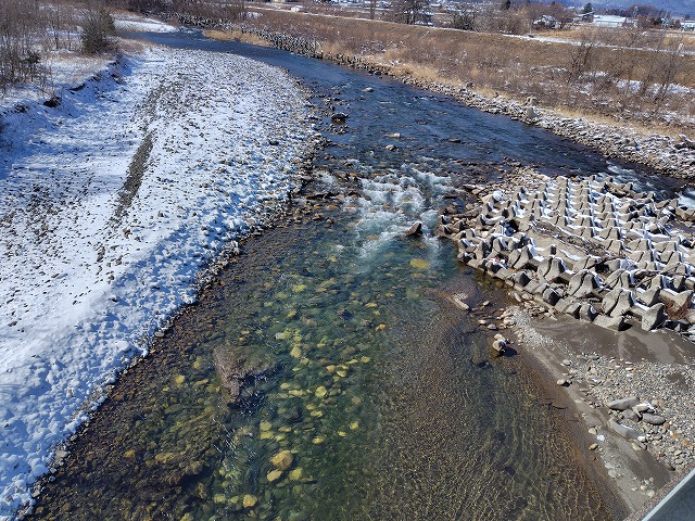 かなりクリアーな状況。水量も前日雪が降ったにも関わらず少な目。