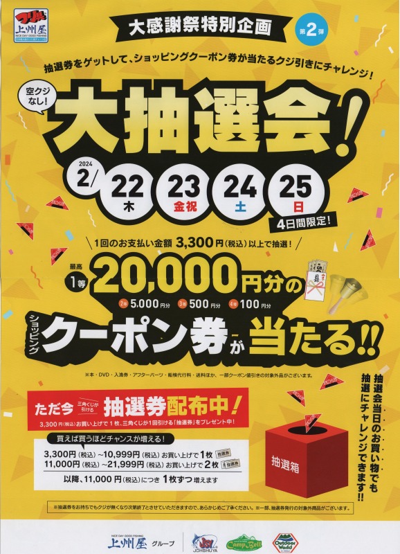 大抽選会開催中(最終日)!!