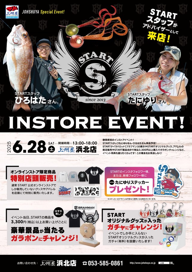 さらに6/28(土)PM1:00~PM6:00までSTART県内初インストアイベントを上州屋浜北店特設会場にて開催決定!!