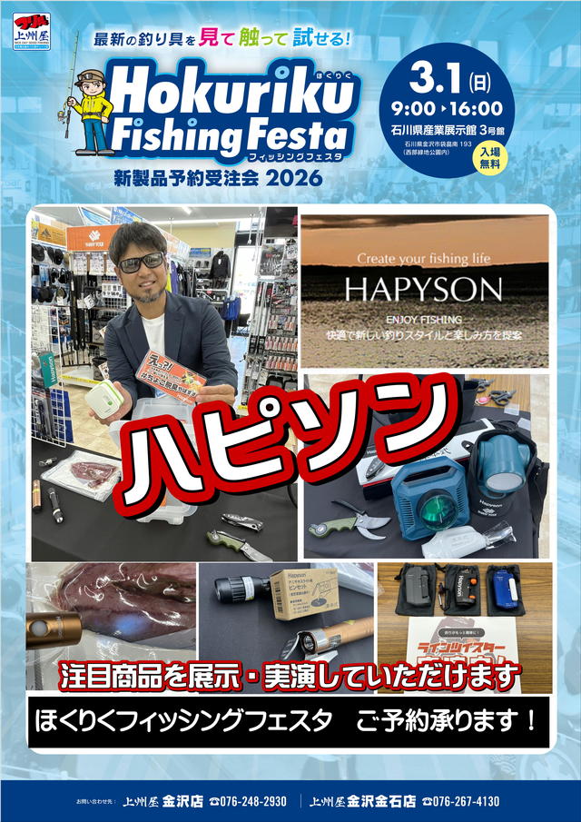 2025年2月3日おすすめ商品 ズィークイッド105/120入荷しました!! ィークイッド105・120各種入荷しました!いよいよホタルイカパターンシーズン開幕ですね♪ご希望のお客様はお早めに!!皆様のご来店お待ちしています。 120 出典: 上州屋からのお知らせ ・会員証機能を搭載!お買い物や釣りの準備がもっと便利になる上州屋“公式”アプリ登場!・【上州屋メンバーズカード】毎月5の付く日と30日(5日、15日、25日、30日)はポイントアップデー!