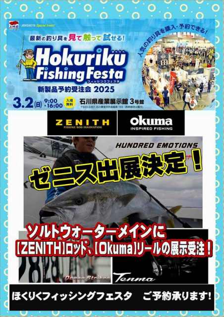 【ZENITH】、【Okuma】ブランドのソルトウォーター用タックルをメインに展示受注いたします!