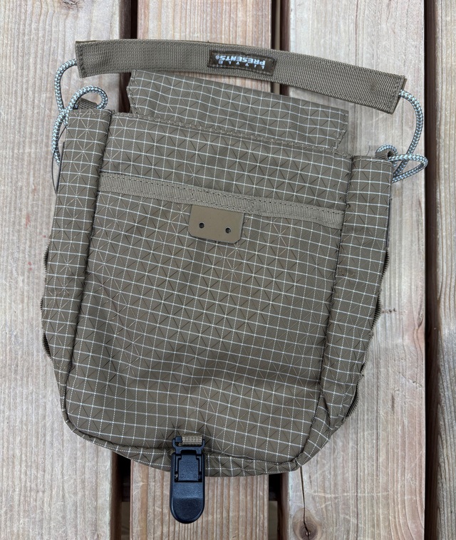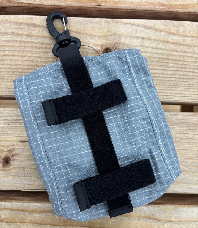 フィールドポーチ 裏面底のクリップをシャツやベルトに挟めばブラつきません