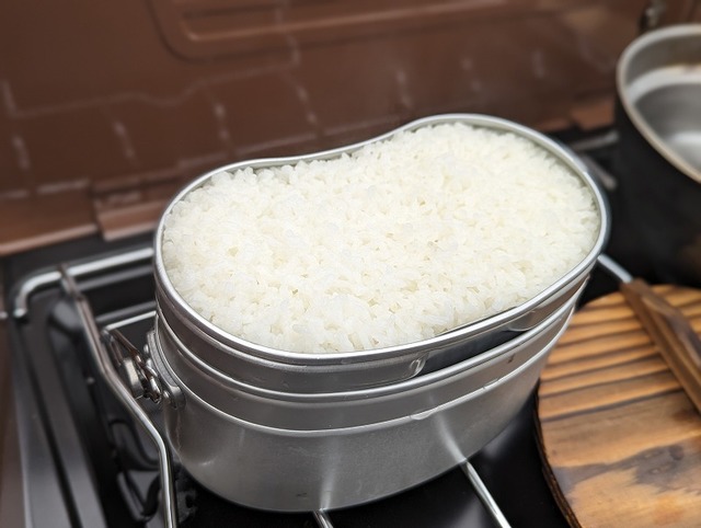 人はなぜにお腹が空いてしまうのか...昨晩はほっけ3切れも食べたのに...エバニューさんの山岳飯盒で水蒸気炊飯開始です。とにかく失敗なくご飯が炊けますよ♪