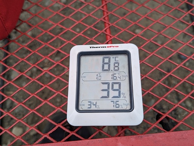 陽が落ちるとグッと気温が下がりますね。17時の時点で気温4℃。焚き火スタートですよ!(^^)!