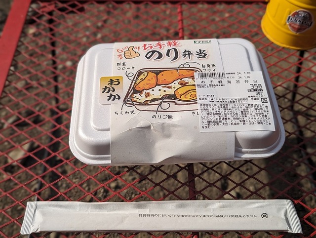 パシっとテント設営!からのチェアリング♪通りがかりのスーパーで購入の「のり弁」がこの日のランチです!昼は(も)手を抜く姿勢は変わらず(笑)