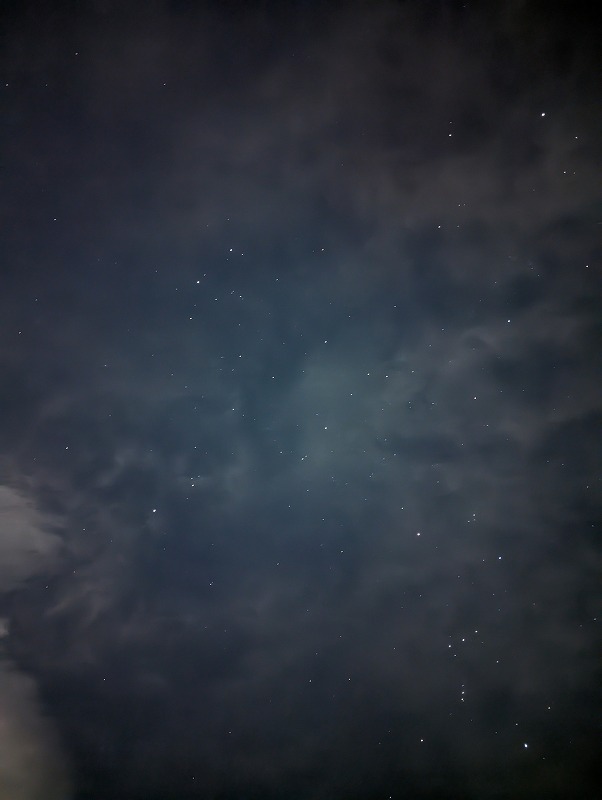 曇りながらも星空は綺麗に見えました♪大きな焚き火を囲みながら、夜は更けていきました。
