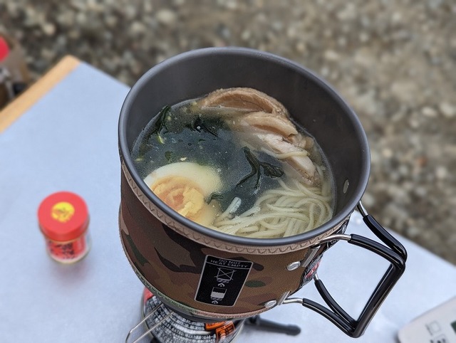 仲田さんの朝食はJETBOIL「MINIMO」で作った塩ラーメン。寒い朝に温かいラーメン最高!めっちゃ美味しそうでした♪JETBOIL「MINIMO」は調理用に最適化したモデルです。クッカーの口も広く高さも低く設定されているので、安定感は抜群です♪