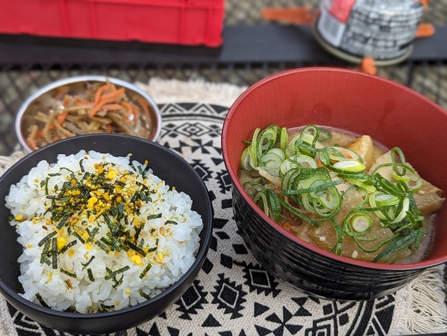 「ご飯に一番合うおかずはのりたまふりかけby愛娘」...たしかに一番合うかも!昨晩の豚汁とのりたまふりかけが朝食となりました♪この日のご飯も水蒸気炊飯で。