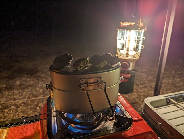 小島のお気に入りギア。Colemanさんの「シングルガスストーブ120A」色味ギミック感共に、とってもかわいい♪この日もEVERNEWさんの「山岳飯盒弐型」で水蒸気炊飯!失敗は無し!