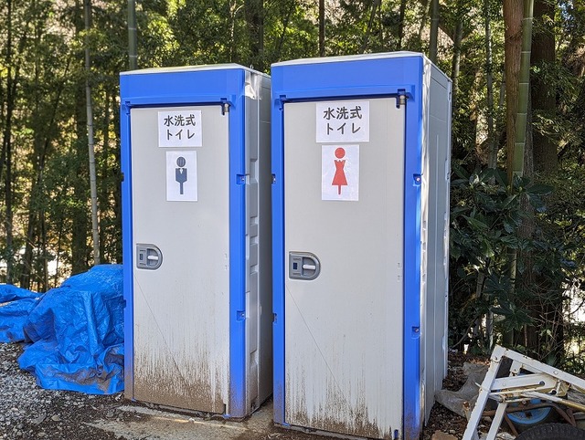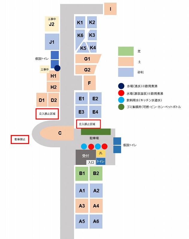 炊事場とトイレは外にあります。管理棟の炊事場のみ飲料可の水が出ます♪トイレは仮設ながらとても清潔でした!