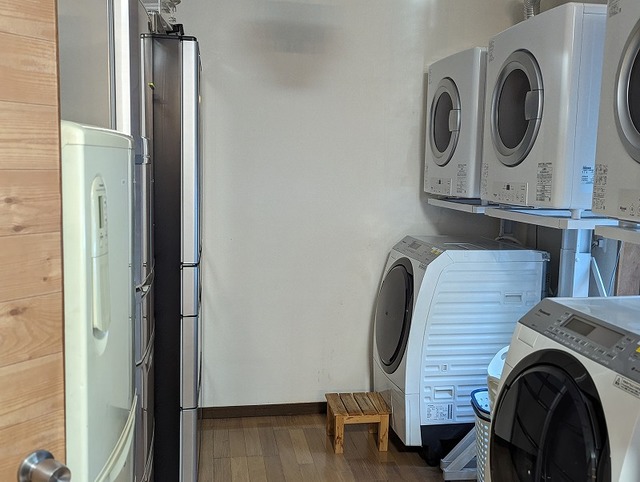 管理棟内には冷蔵庫完備!名前を書いて食材等を保管できます。連泊の方には嬉しい洗濯機&乾燥機もありましたよ!連泊したくなっちゃう♪