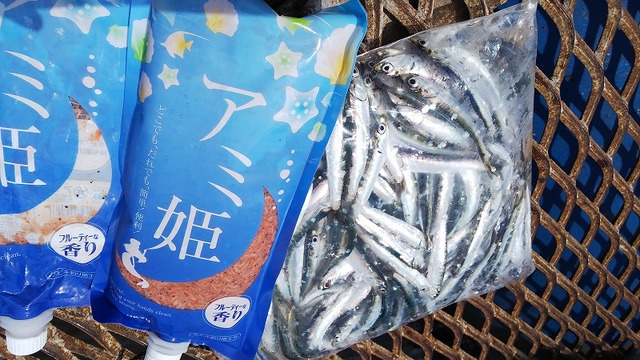 エサは冷凍のアミコマセが一番ですが、常温タイプのコマセでもこの通り!