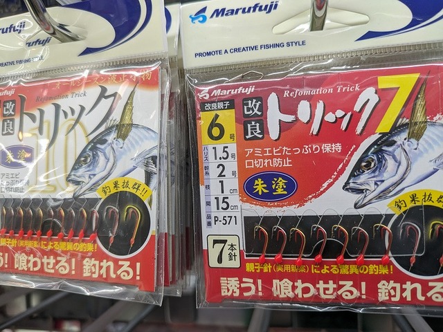 ※潮の流れがとても早く、水深もあるのためオモリの重さが重要です。市販の仕掛にセットされているオモリではあっという間に横に流されて着底困難・隣と絡むので重いオモリが必要です。