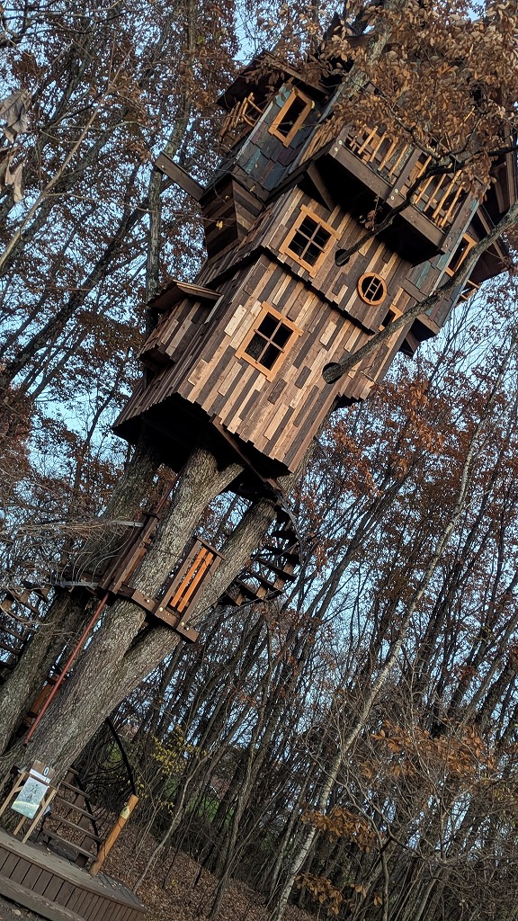 女3人で食後のお散歩(^^♪一番奥にある大きなツリーハウスまで行ってみました。一番上まで登れるようですよ。近くに滑り台などの遊具もありました。お子様を連れてのキャンプの場合、こういうアクティビティがあると嬉しいですよね♪週末などは体験教室もあるようです。