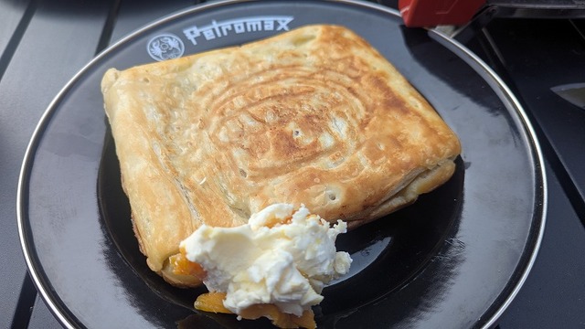 健康診断も近いのに( ノД`)止まらぬキャンプ飯欲( ノД`)...ホットサンドメーカーでアップルパイ作ってみましたが、デカすぎる笑。パイじゃなくてほぼパン笑。この後軽くお昼寝へ...♪連泊最高...♪