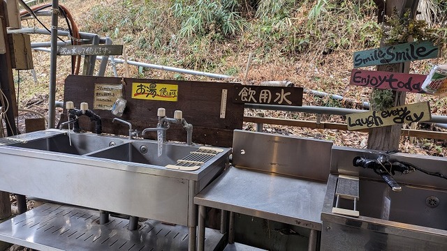 炊事場はお湯が出ます!今の時期、水は痺れるほど冷たいのでありがたい♪