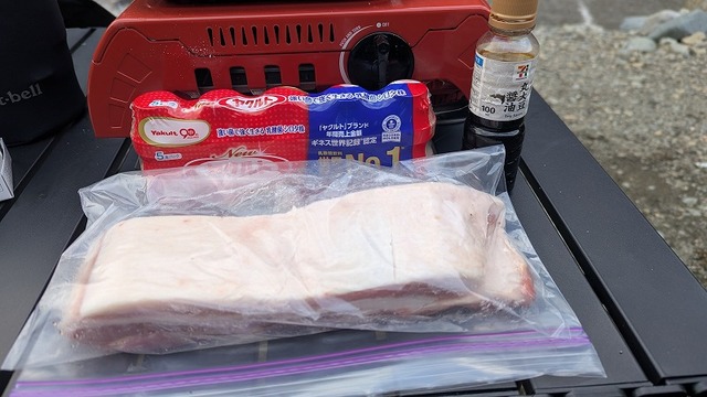早速夜ご飯の準備!豚バラブロックをヤクルトと醤油で煮込む「チャーシュー」が今夜のメニュー!ヤクルトの菌がお肉を柔らかくしてくれるそうで...こうご期待!