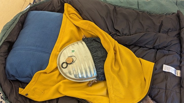 電源サイトではないのでこれは必須ですぞ!のマルカの湯たんぽ。寝る30分前にシュラフ内に入れておくのです♪ぬくぬく睡眠タイム確約です!