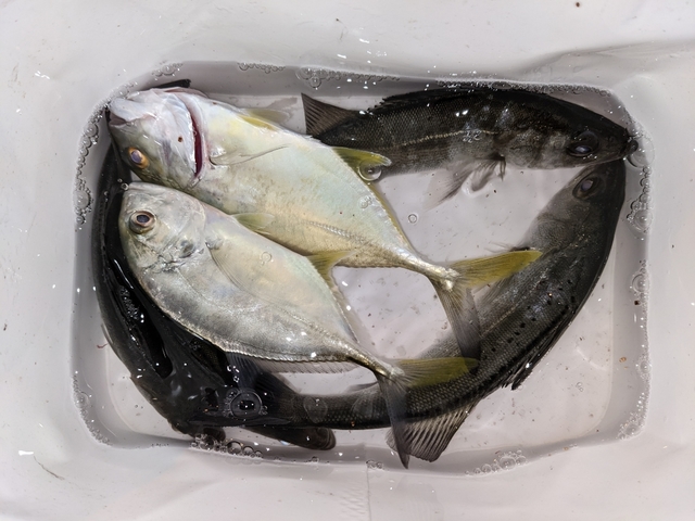 メッキの連続に期待しましたが2匹で終わり、その後はクロサギと小さいコトヒキの猛襲に合いエサがどんどん無くなってしまう。