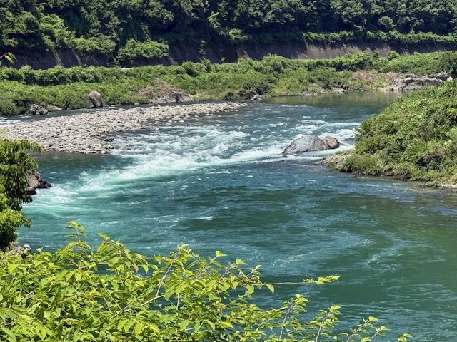 この付近に正午ごろラフティングのボートが下って来ますね。