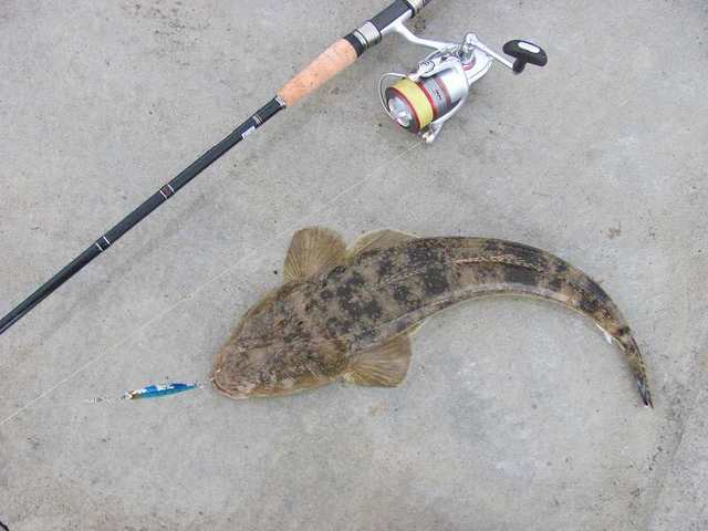 急深で海流が早く青物の一級ポイント、この日は確かショアジギングでカンパチを狙っていたのですがよそ見していたらメタルジグが着底してしまい、ヤバいヤバいと巻き始めて直ぐにこれが掛かりました。マゴチは大概オスメスペアでいることが多いので、ヒットした場所にもう一回ルアーを投げるともう一匹釣れることがあります。