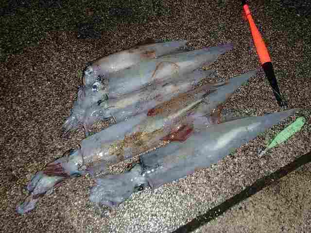 釣果は大体一晩で5~10匹ぐらいですが、いい群れにあたったりヤリイカ狙いの釣り人が少ない時等はそれ以上釣れる事もあります。