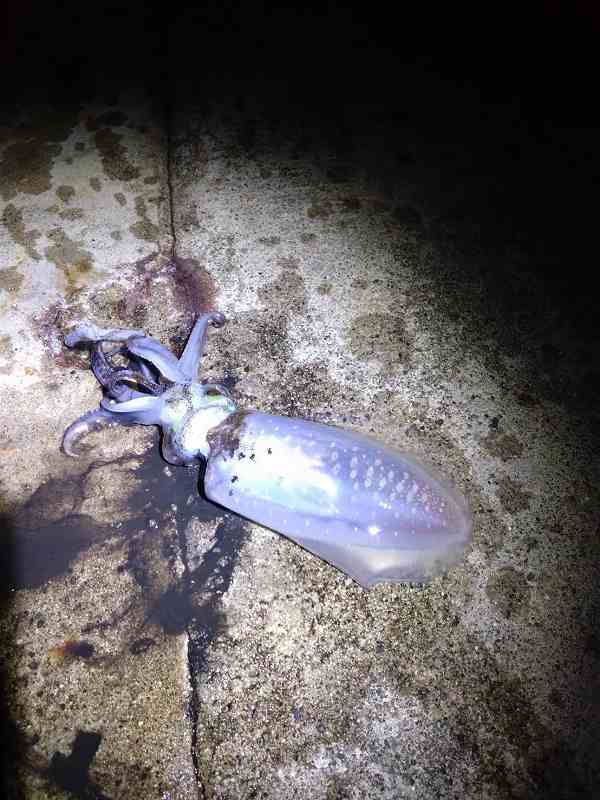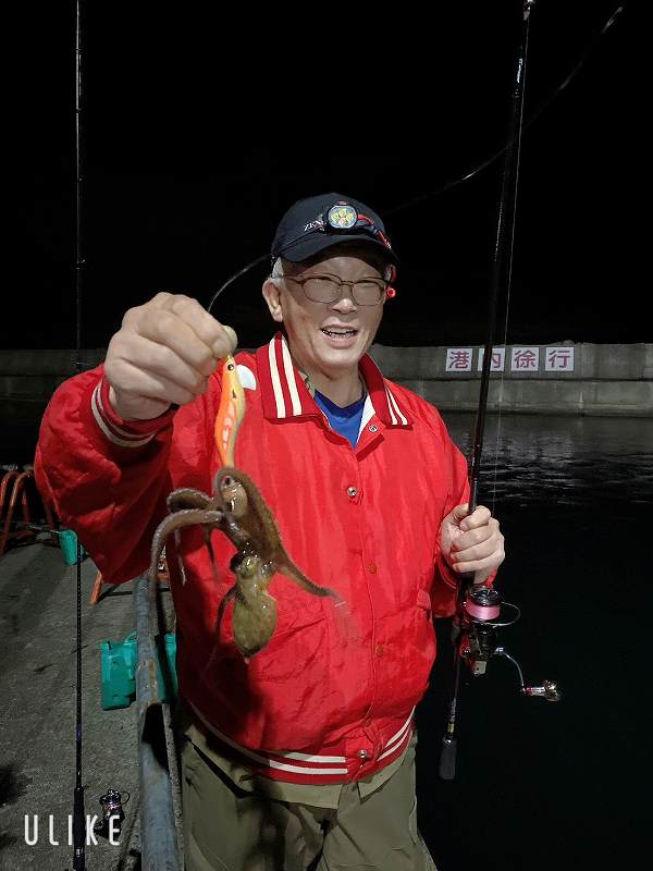 亀田はエギをしゃくってみましたがタコ(クモダコ)が2匹釣れただけ、一緒に行った方が小さなアオリイカ1匹釣っただけでエギングは完敗。