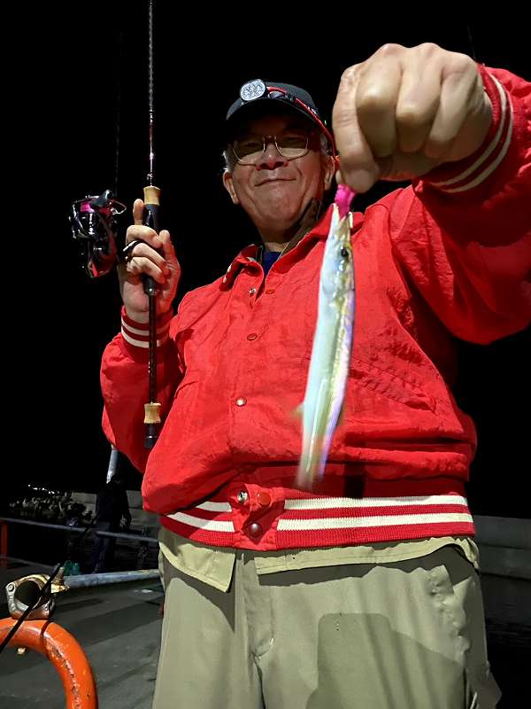 ノーマルタイプのエギよりもシャロータイプのエギでゆっくりフォールさせるとよかったと言ってました。