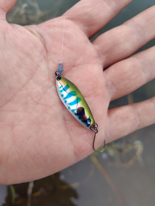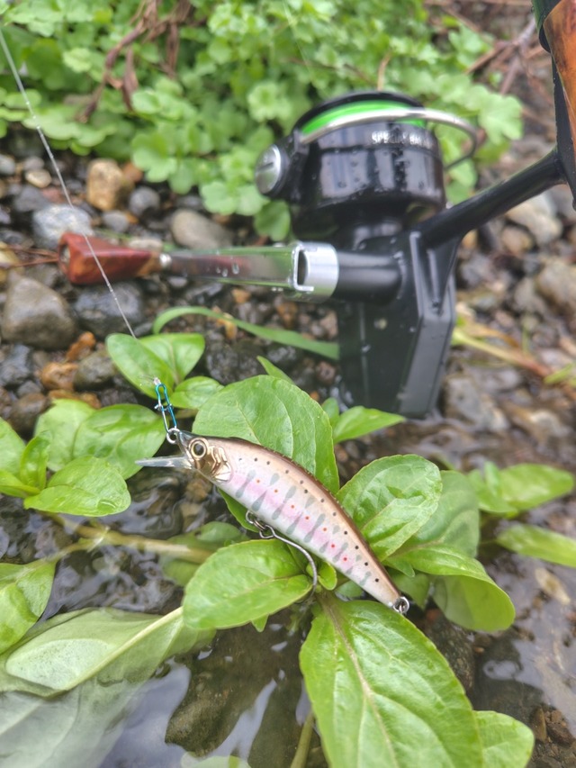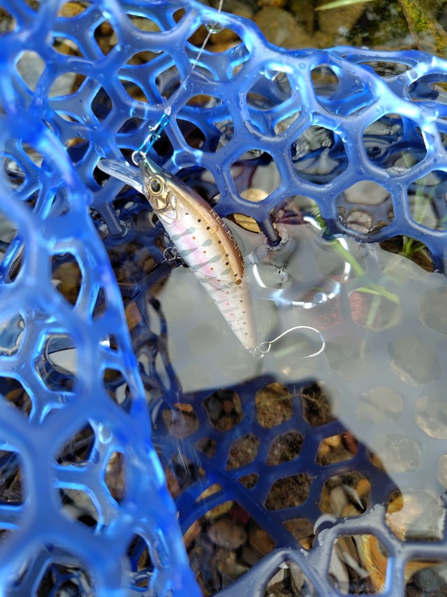 流れが緩い場所に溜まりやすい放流ニジマスを釣るのにちょうど良い感じです。