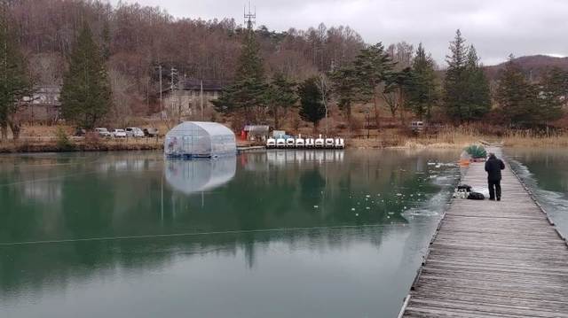 松原湖のドーム桟橋見てきました