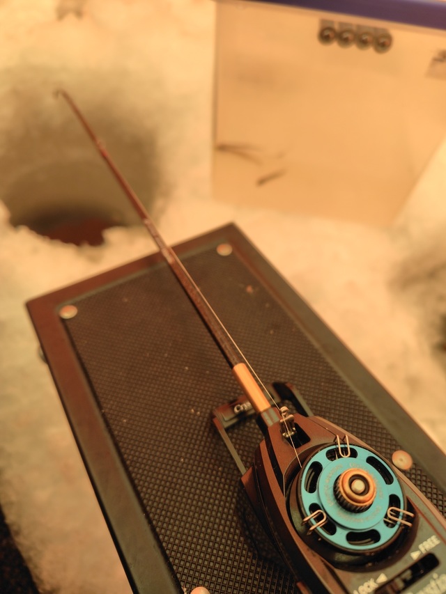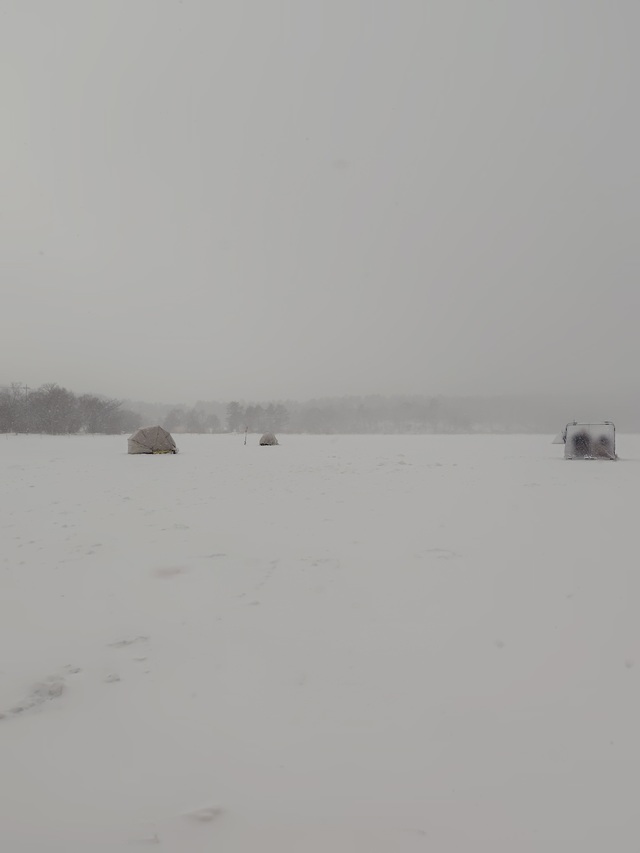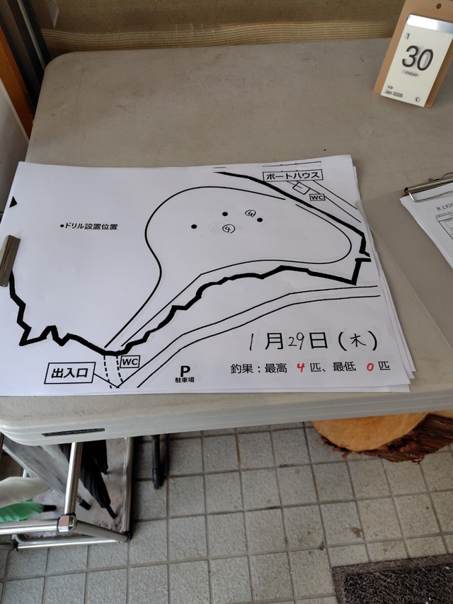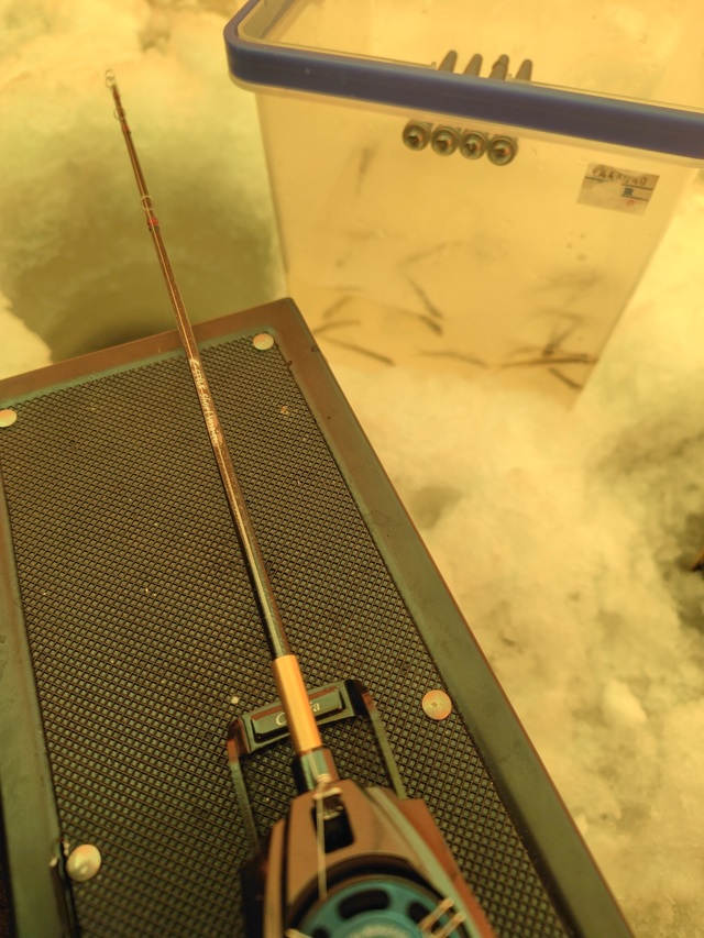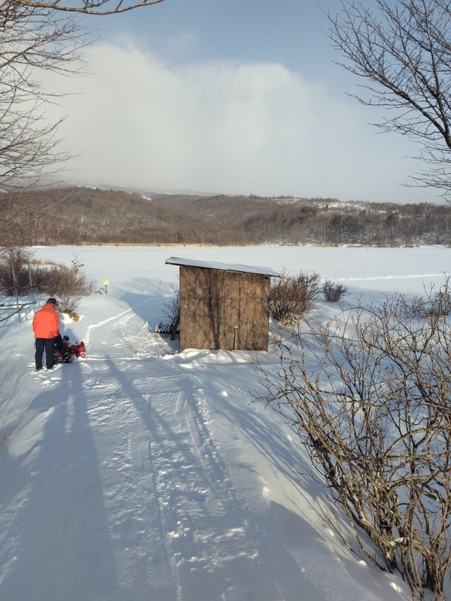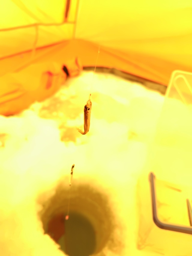 昨日の釣果の画像に黒い点がありましたがそこはアイスドリルが設置してある場所になります。