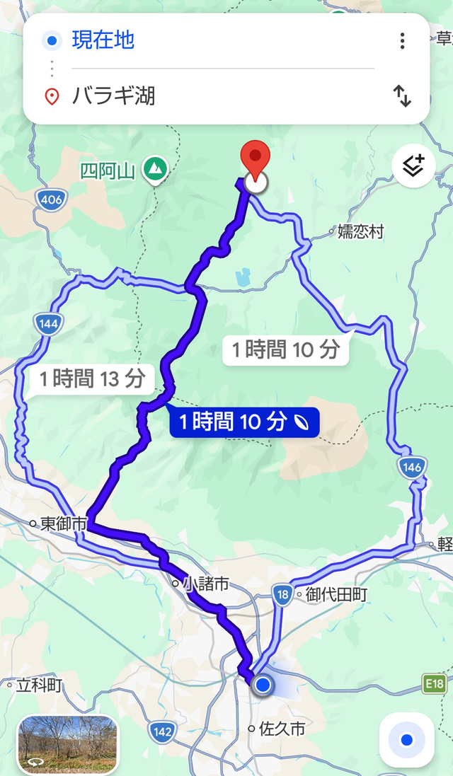 中軽井沢を抜ける道は通ったことがあるので今回は真ん中の湯ノ丸スキー場経由(94号)で行くことに。