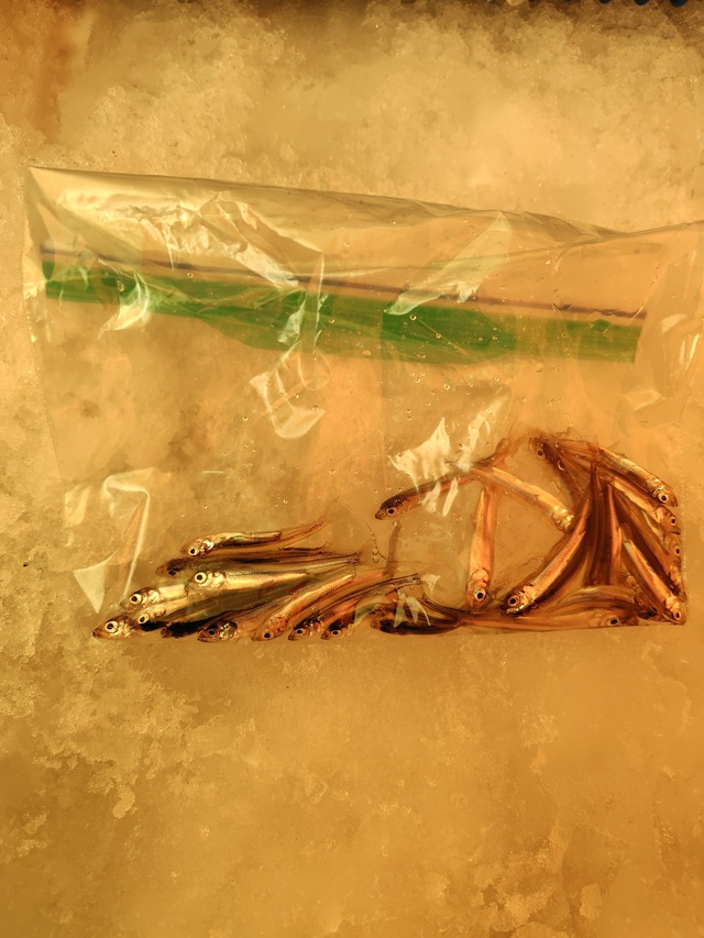 その後も仕掛けを変えて誘い続けましたがワカサギのアタリは無くニジマスが2回ヒットしただけでした。