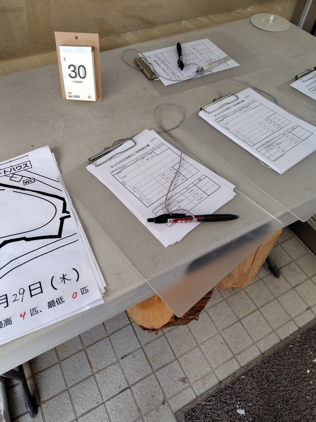 入口で受付表に記入してレジで一日券990円(税込み)を払います。