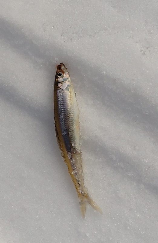 15匹釣った中で一番小さかった8㎝のワカサギ
