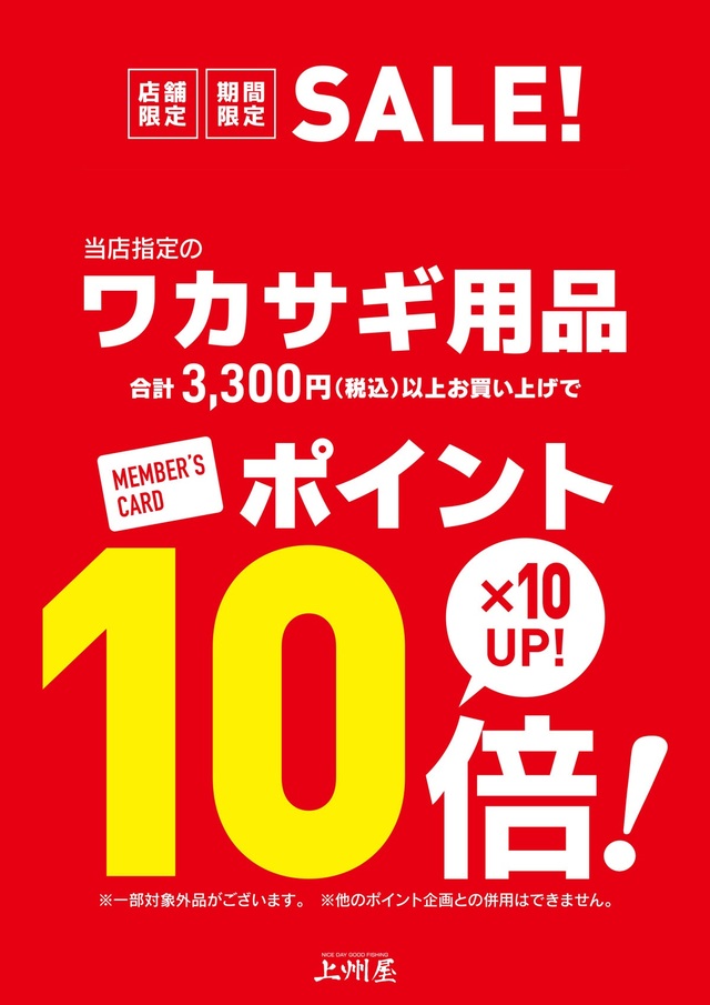 冬の風物詩、ワカサギ釣りシーズンを迎え、人気のワカサギ用品を店舗限定、期間限定特別SALE企画にて提供いたします!