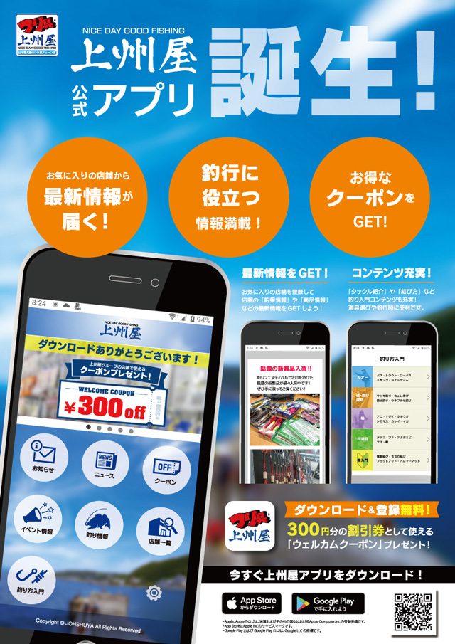 ▼▼今すぐ上州屋アプリをダウウンロード!▼▼