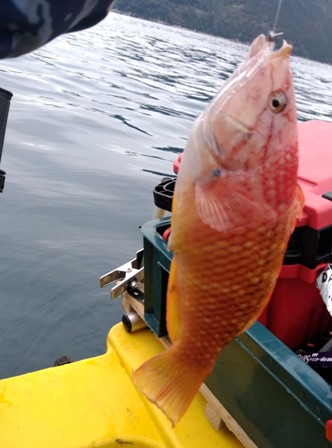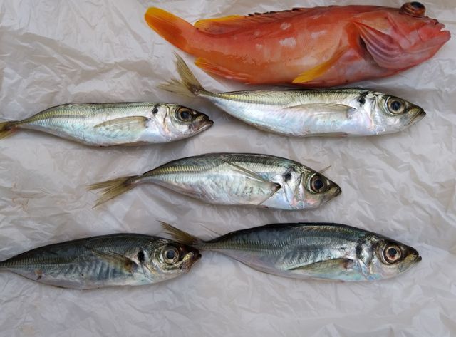 おみやげは浮いてしまったアカハタとアジ5匹。晩に煮つけで大変美味しくいただきました。