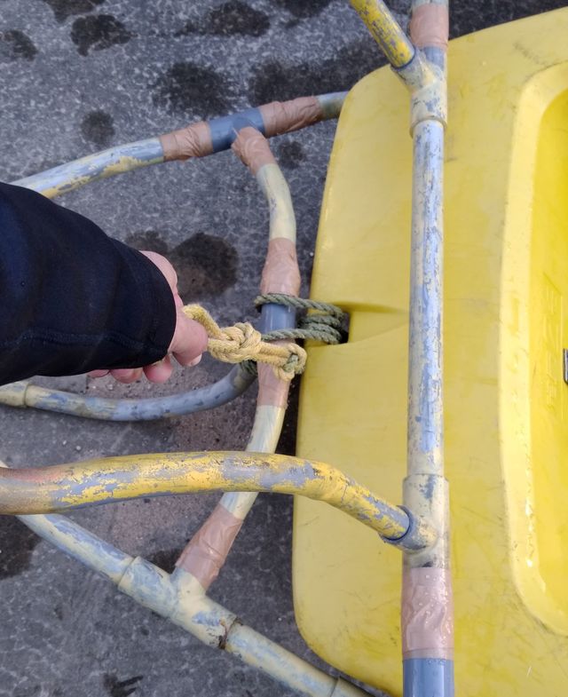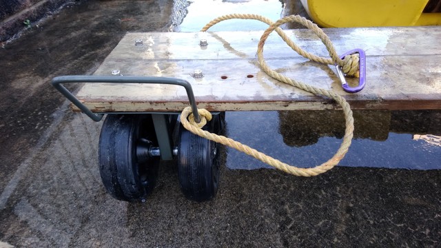 ロープで固定してキャリアへボートと一緒に積めるようにしました。