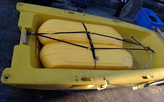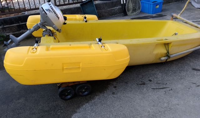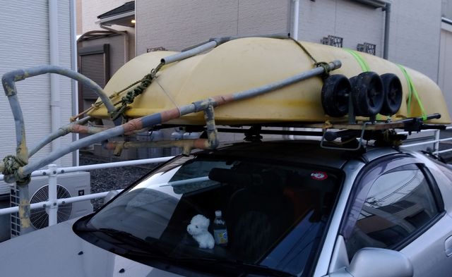 昨年、車を軽バンから普通車に変えたためサイドフロートをボートの中に収納するようにしました。