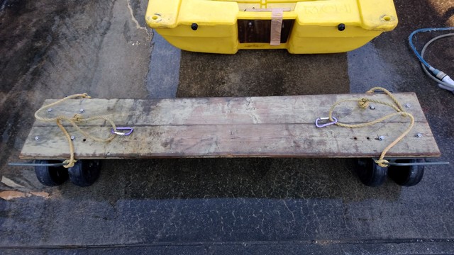 この時、ボートを出す場所が海岸からのことが多く、波打ち際まで道具を運ぶのに何回も往復するのが大変だったことから、昔ボートにつけていたドーリー(タイヤ)をまたこしらえようと考えました。