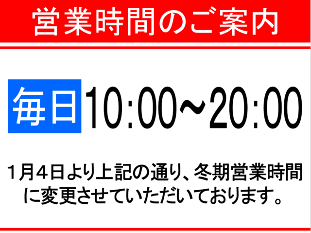 1月4日より冬期営業時間となります。