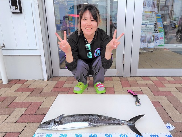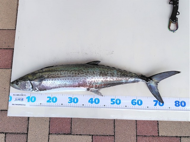本日遊漁船で釣行されたお客様Y様がジャークベイトでサワラ76cmをゲット!!