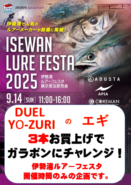 DUELブースより伊勢湾ルアーフェスタの新たな特典がございます!