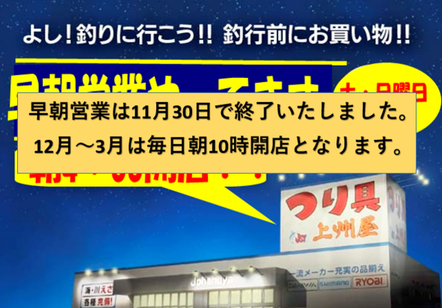 4月半ばからはじまった(土・日・祝)朝4時からの早朝営業は11月をもって終了いたしました。