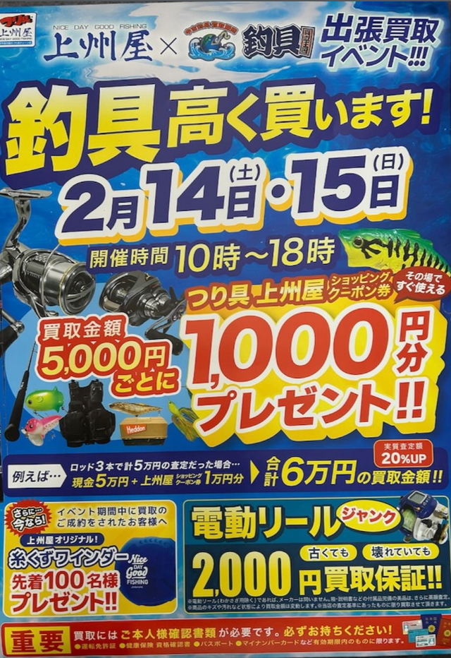 2025年11月1日その他・お知らせ 営業時間のお知らせ いつも上州屋関店をご利用いただき、誠にありがとうございます。この度関店では11月1日より営業時間が変更となります。お客様にはご不憫をおかけしますがご理解の程よろしくお願いします。 上州屋からのお知らせ