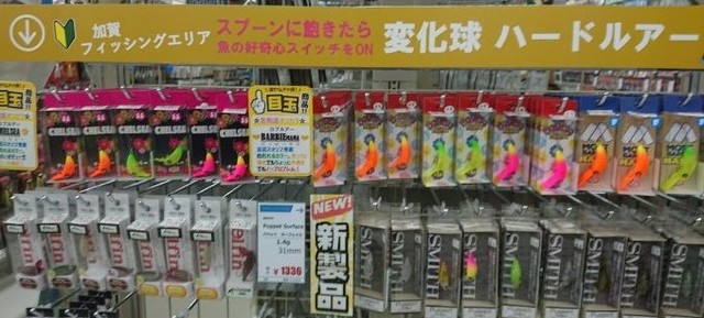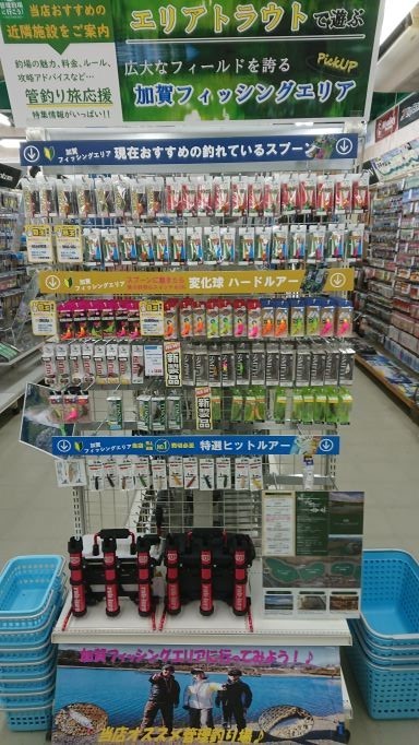 当店では加賀フィッシングエリアの特設コーナーを設置し、釣れる道具を多数ご用意しております。
