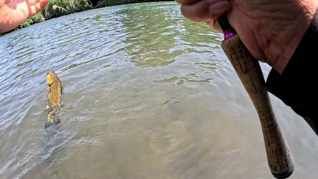 やや薄い濁りがあり浅いポイントでもバスの姿は見えないやや不安はありましたが瀬落ちの深みがあるポイントで丹念に流れのヨレを探ると引ったくるアタリがきました!