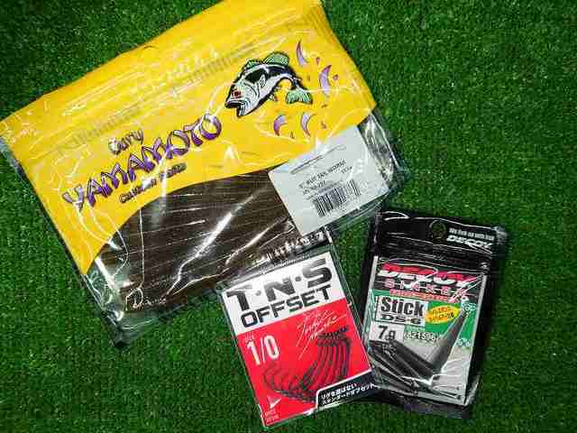 ヒットルアーはゲーリーヤマモト《カットテール5inch》のヘビーダンショットリグ。シンカーは7gでフックはオフセット1/0、フックとシンカーの間は約30センチの設定でした。